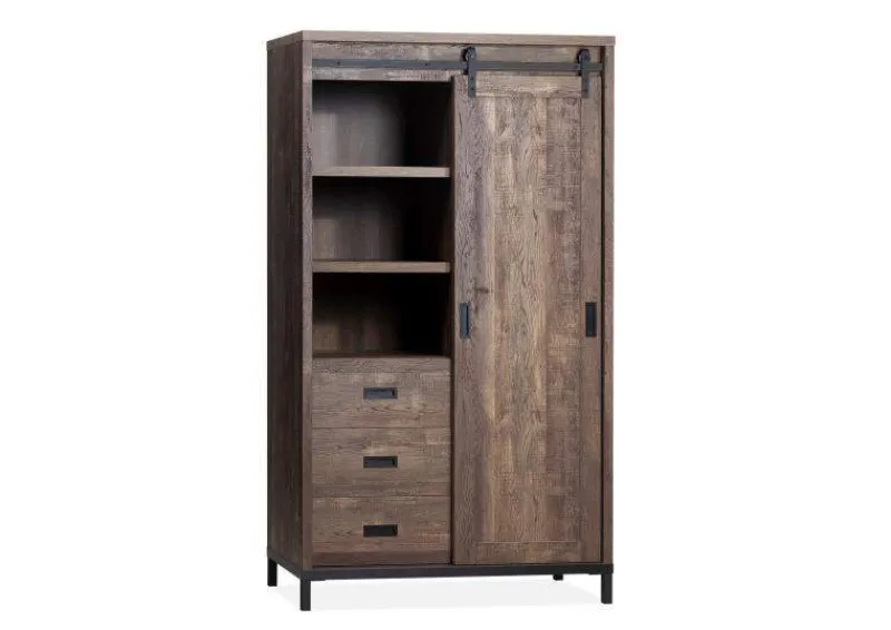 Voeg stijl en functionaliteit toe aan uw interieur met de Bergkast Staphorst. Met zijn espresso houtkleur en bijzonder design zal deze bergkast een opvallende aanvulling zijn in uw woonruimte. De Bergkast Staphorst combineert esthetiek met praktische opbergruimte. De deuren van de kast hangen aan robuuste rails, waardoor ze doen denken aan ouderwetse staldeuren en een uniek element aan de kast toevoegen. Met een hoogte van 170 cm biedt deze bergkast voldoende opbergruimte voor al uw persoonlijke bezittingen. Of het nu gaat om servies, boeken, of decoratieve items, deze kast voorziet in uw opbergbehoeften op een stijlvolle en georganiseerde manier. Upgrade uw interieur met de Bergkast Staphorst.