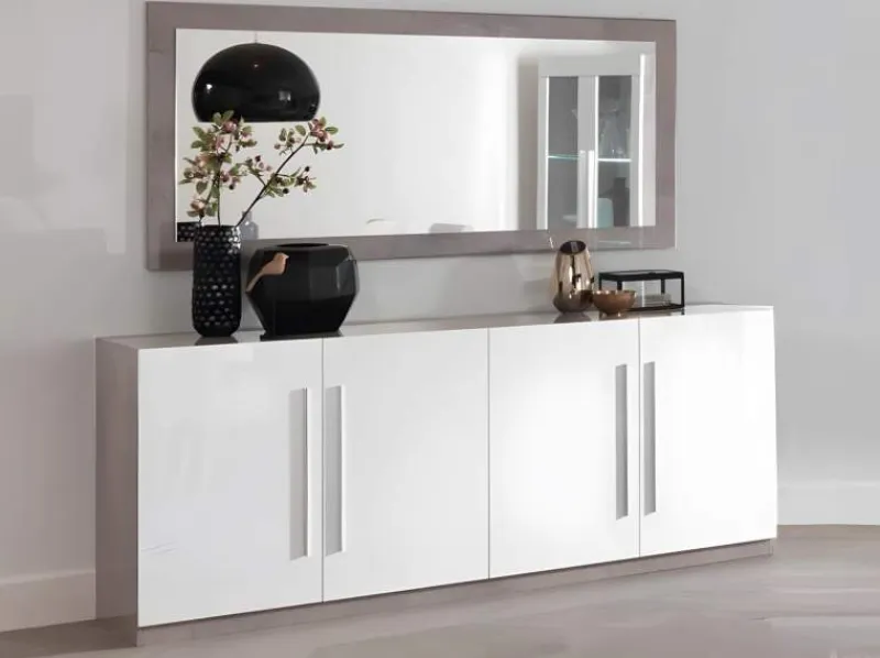 Met het plaatsen van dressoir model Giethoorn in hoogglans marmer wit voegt u zeker iets moois toe aan uw woonkamer of kantoor. Het dressoir bestaat uit 4 deuren met verticale handgrepen. De decentrale plaatsing hiervan geven het dressoir een speels uiterlijk.