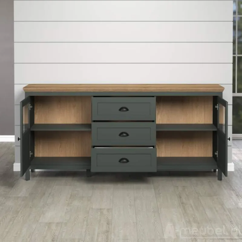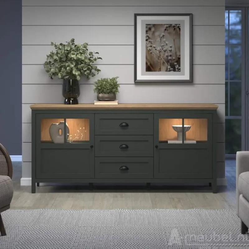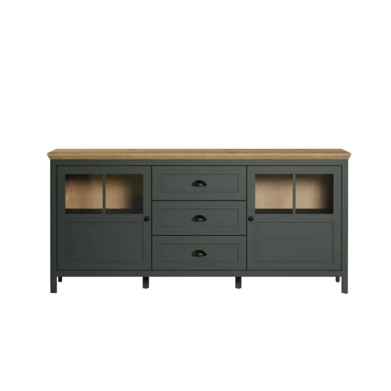 Kleur/materiaal: Donker groen met eikenhout afwerking