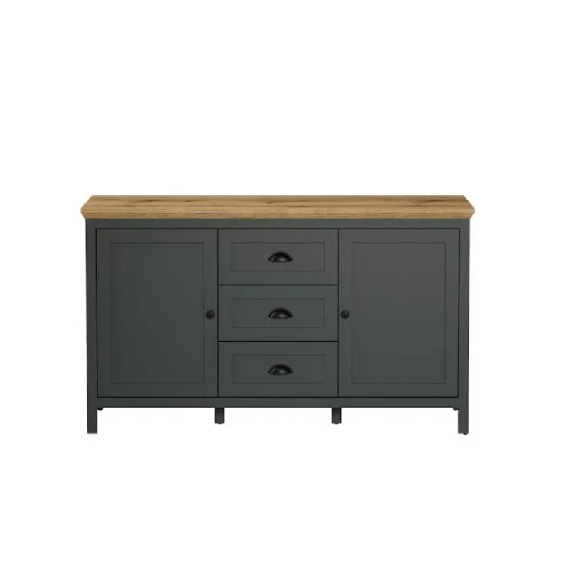 Kleur/materiaal: Donker groen met eikenhout afwerking