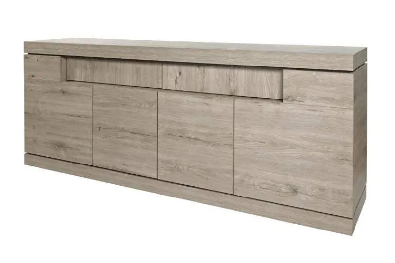 De dressoir Emmen is op en top modern en strak van vorm. Met zijn millenium eik licht grijs-marmer kleur geeft dit dressoir toch wel nog een natuurlijk tintje aan uw woonkamer. De 4 deuren en 2 brede lades voorzien dit verfijnde dressoir ook nog van veel opbergruimte.