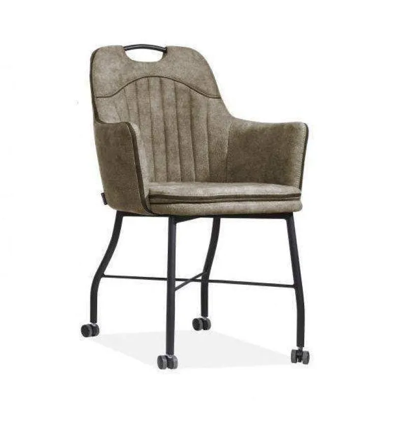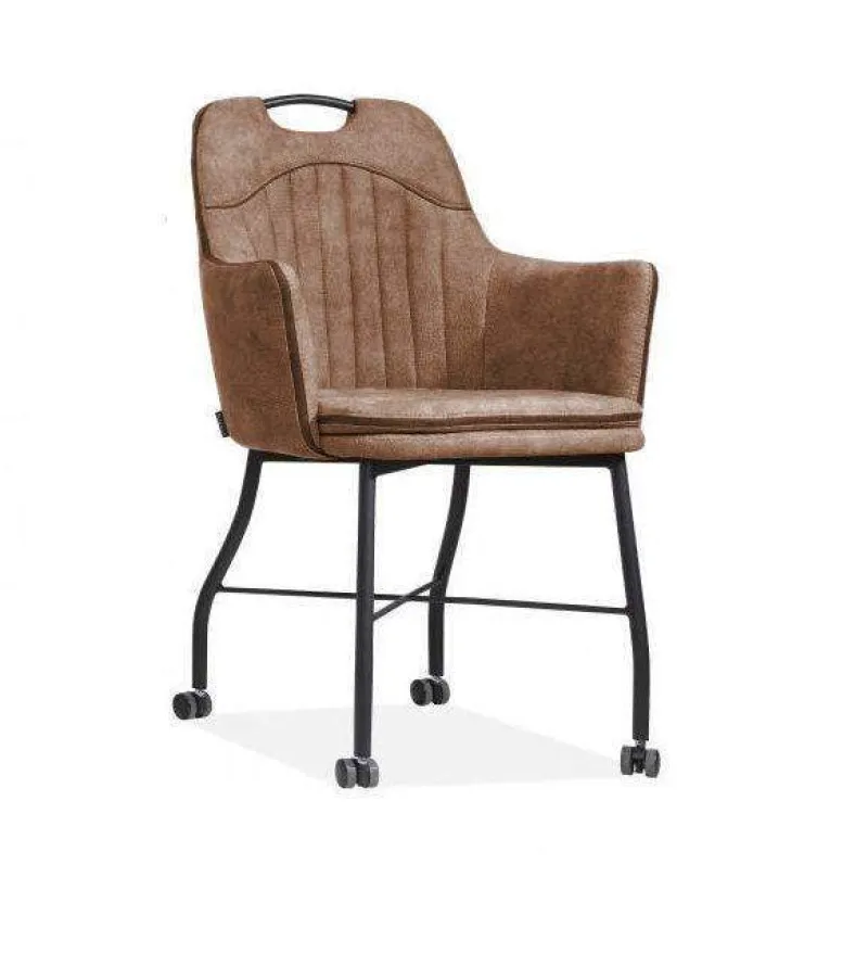 De Floria eetkamerstoel op wieltjes is een fraaie toevoeging aan uw eethoek. De kuipstoel is door de wielen extra gemakkelijk te verschuiven. Het design omvat een hoge rugleuning en armleuningen voor extra ergonomisch comfort. De stoel staat ook perfect aan een bureau of in een kantoorruimte.