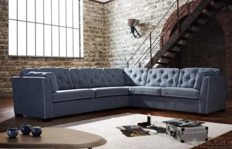 Het prachtige Dordrecht hoekbankstel heeft een klassieke uitstraling. De bank heeft comfortabele kussens waar u heerlijk op tot rust kunt komen. Standaard is dit hoekbankstel uitgerust met knopen en met een bies in dezelfde kleur als de bank. Maar u kunt de bank ook zonder knopen en met een witte kleur bies laten opstellen. De bank is ook verkrijgbaar in verschillende stoffen en leer soorten. Zo kunt u uw eigen draai geven aan deze klassieke bank.