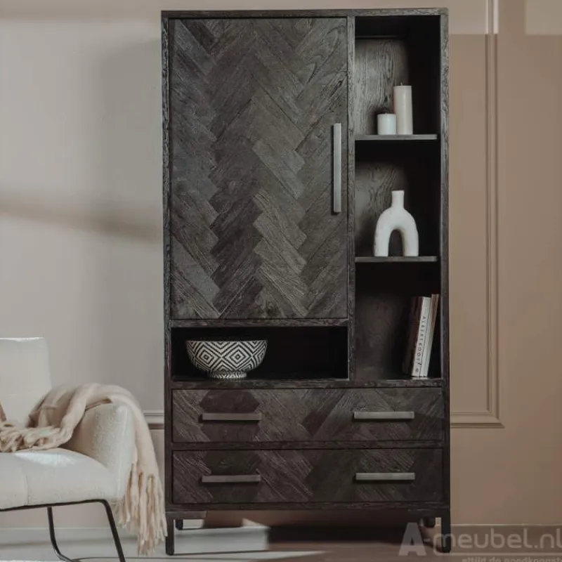 Materiaal / Afwerking: Gerecycled hout & Eiken fineer in zwart