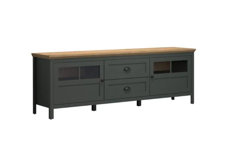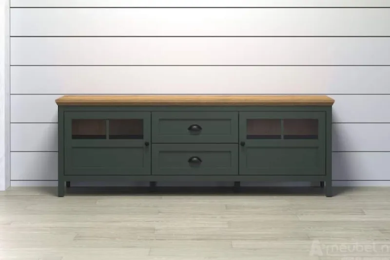 Kleur/materiaal: Donker groen met eikenhout afwerking