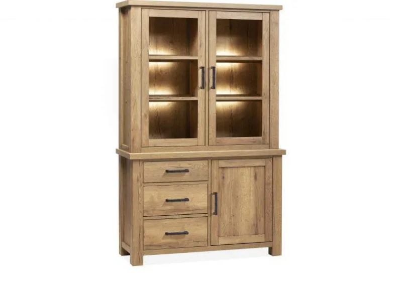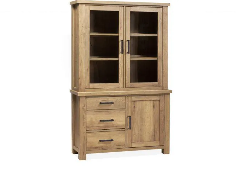 Model: Nieuwegein Vitrinekast Midden 2 glas 1 deur 3 laden Lamulux
