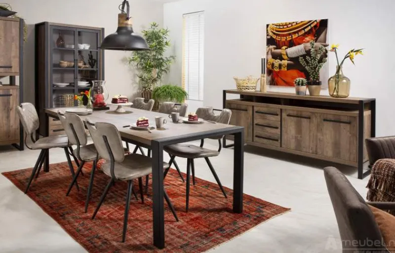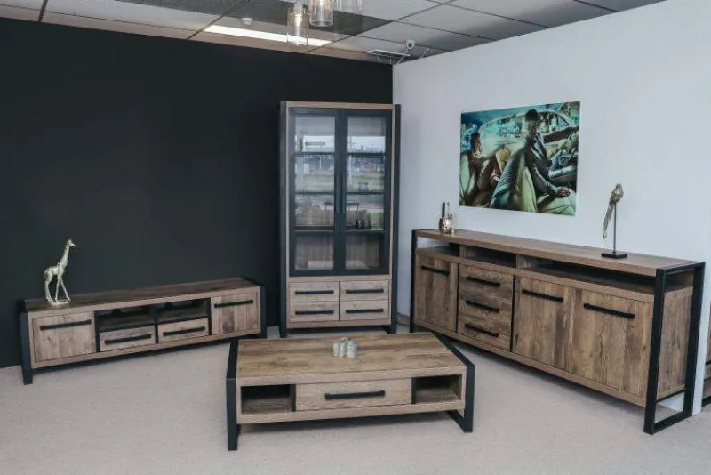 De Cadzand woonkamerset is een stoere robuuste woonkamer set afgewerkt in een warme Mokka houttint. De set bestaat uit een eettafel, salontafel, TV-meubel en dressoir en is nog verder uit te breiden met verschillende losse meubels zoals de broodkast, combikast, vitrinekast of met een leuk hoektafeltje.
