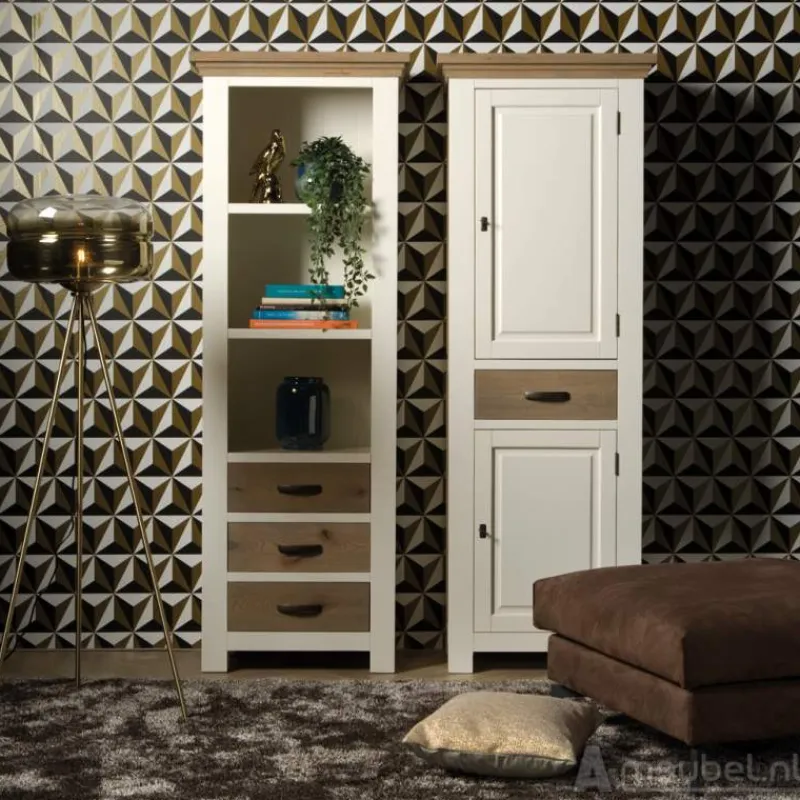 Woonkamerset Parma is gemaakt van rustiek eiken en grenen en leverbaar in 4 prachtige kleuren. De eiken delen worden licht geborsteld en afgewerkt met een olie. Het witte grenen frame van de meubelen wordt op enkele plaatsen lichtelijk opgeschuurd, waardoor dit lifestyle woonprogramma een mooie landelijke uitstraling krijgt.