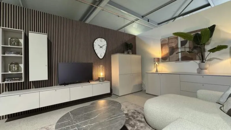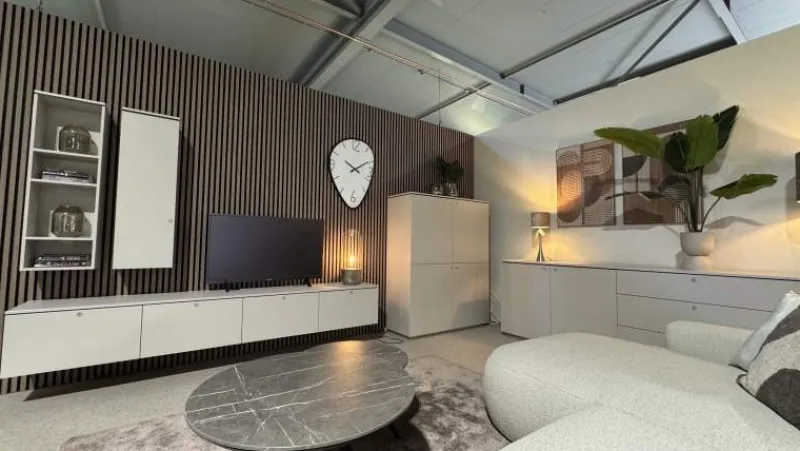 De Slagharen woonkamerset straalt een elegante balans uit tussen functionaliteit en design, en is hierdoor een stijlvolle aanvulling op elk interieur. Standaard zijn de kasten uitgevoerd als hangende variant, wat zorgt voor een ruimtelijk en elegant effect. Voor wie de voorkeur geeft aan een staande uitvoering, is dit tegen een meerprijs mogelijk. De set bestaat uit een dressoir, eettafel, salontafel en TV-meubel en is optioneel uit te breiden met een bergkast.