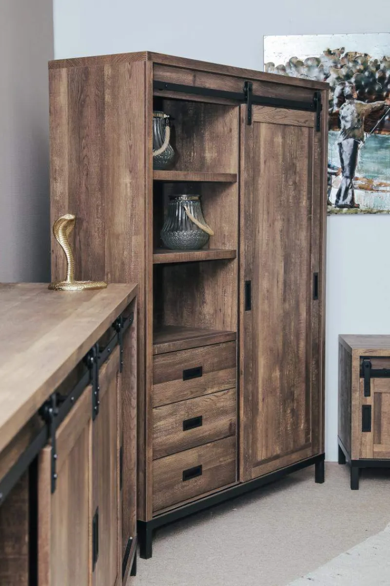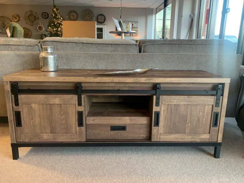 Ontdek de verfijnde esthetiek van de Woonkamerset Staphorst. Met zijn espresso houtkleur en opvallende design is deze set een blikvanger in elke woonruimte. De industriële afwerking voegt een stoere en eigentijdse uitstraling toe aan het geheel. Wat de Woonkamerset Staphorst echt bijzonder maakt, zijn de deurtjes die aan robuuste rails hangen. Dit geeft de meubels het karakter van ouderwetse staldeuren, wat een charmante en nostalgische touch toevoegt. Deze set is perfect voor zowel landelijke als industriële interieurs. De espresso houtkleur en de industriële afwerking sluiten naadloos aan bij deze stijlen.