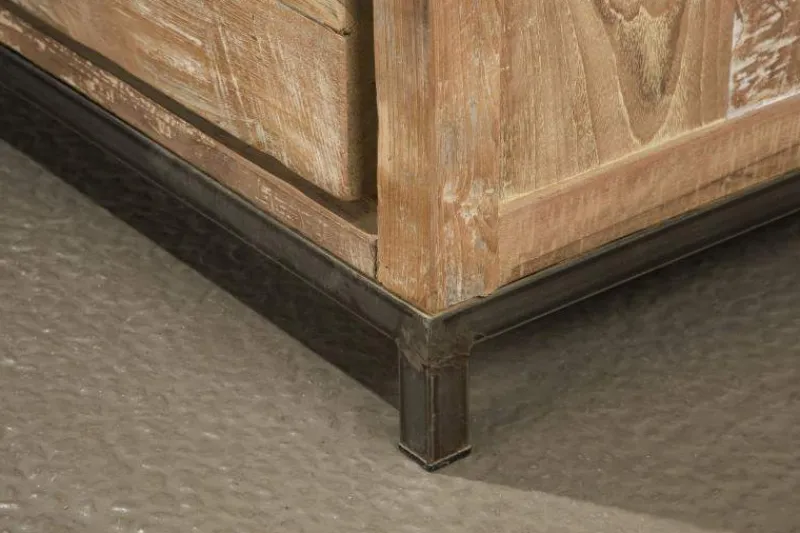 Materiaal: Gerecycled oud teak met een white wash afwerking. Stalen onderstel.