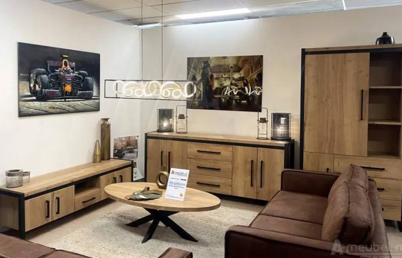 De Woonkamerset Zoetermeer komt in de kleur Natur en heeft mooie zwarte details. Een bijzondere kleur met een unieke touch. Deze woonkamerset past perfect in verschillende woonstijlen, van landelijk tot modern.