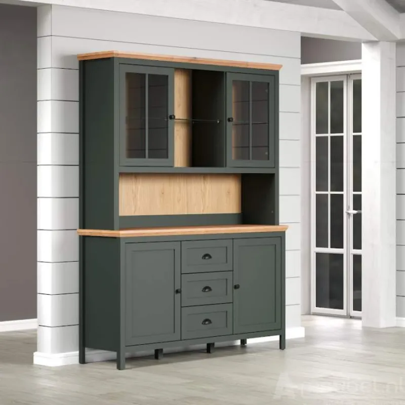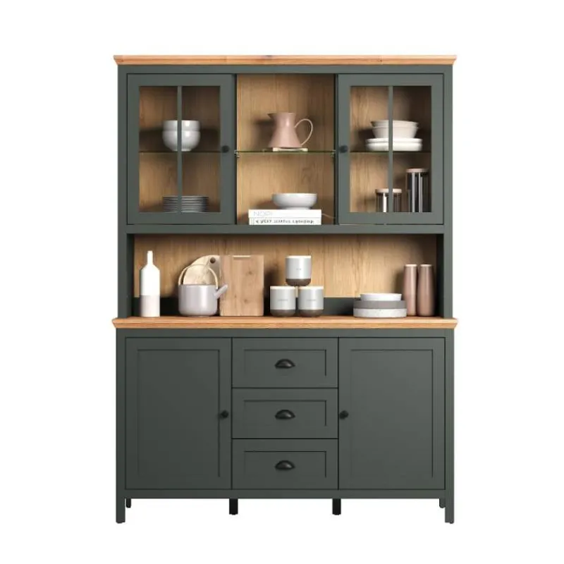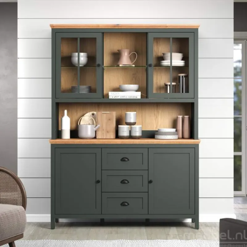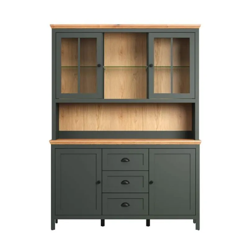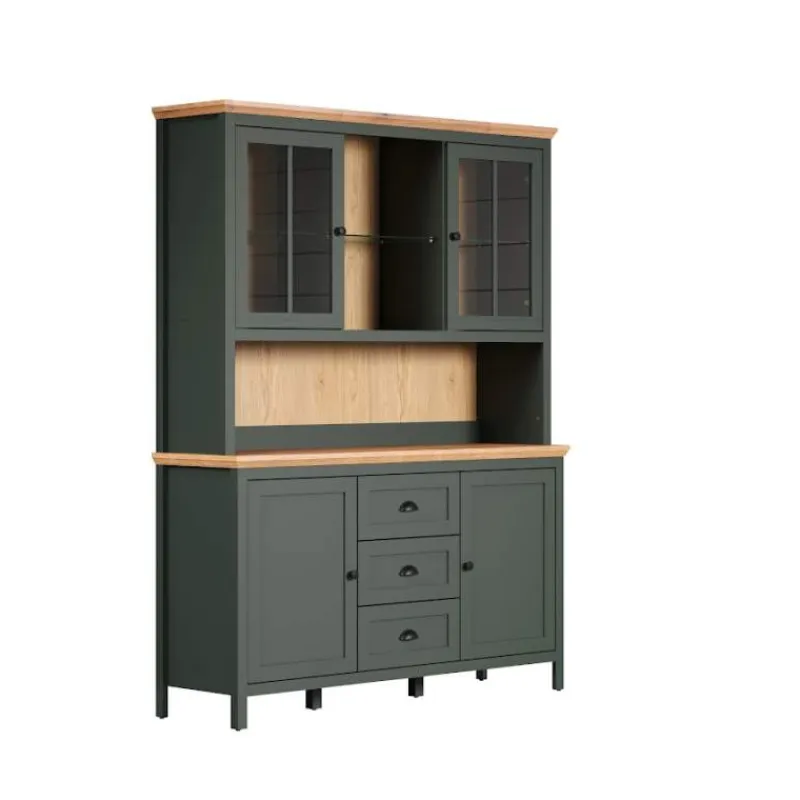 Kleur/materiaal: Donker groen met eikenhout afwerking