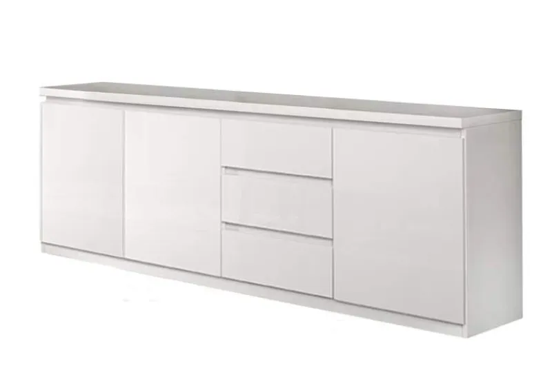 Dressoir Apeldoorn model groot is met 3 deuren en 3 laden een ruimte gigant. De dressoir is met zijn witte hoogglans kleur een absolute topper onder de modern vormgegeven dressoirs. Hij past in elke woning met en eigentijdse inrichting.