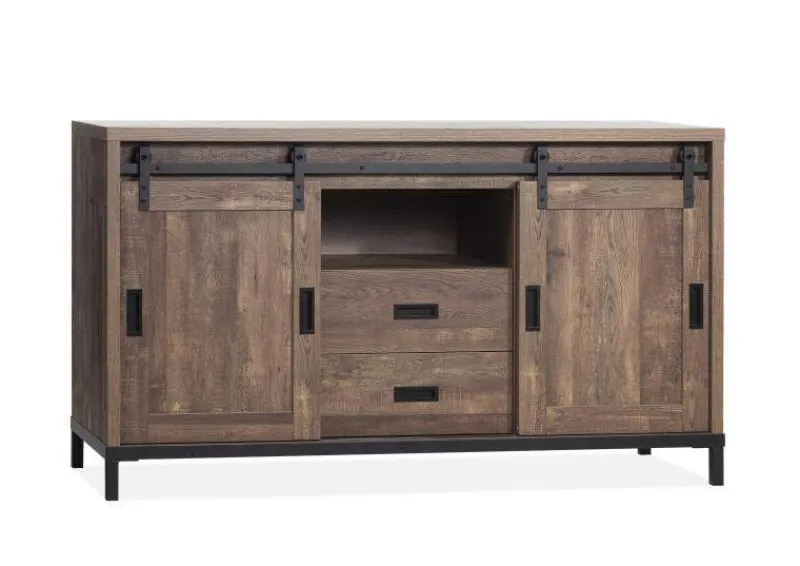 Maak kennis met het charmante Dressoir Staphorst. Met zijn espresso houtkleur en opvallende design is dit dressoir een perfecte toevoeging aan uw interieur. De industriële afwerking voegt een stoere en eigentijdse uitstraling toe aan het geheel. Dit dressoir is niet alleen visueel aantrekkelijk, maar ook praktisch. De deurtjes hangen aan robuuste rails, waardoor deze op ouderwetse staldeuren lijken. Dit geeft het dressoir een bijzondere uitstraling en karakter. Met een breedte van 150 cm biedt het Dressoir Staphorst voldoende opbergruimte voor uw persoonlijke bezittingen. Of u nu servies, boeken of decoratieve items wilt opbergen, dit dressoir voldoet aan al uw behoeften. Voeg stijl en functionaliteit toe aan uw interieur met dit dressoir.