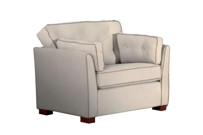 Standaard uitvoering: Vast gestoffeerd met knopen met bies in dezelfde kleur als bank.
