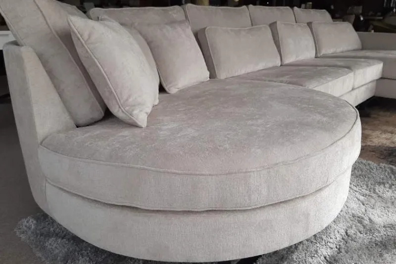 Loungebank rond Amstelveen is een meesterwerk van vakmanschap en design. De harmonie tussen vorm en functie wordt meteen duidelijk zodra u de bank ziet en voelt. Met de nadruk op comfort en esthetiek is de Amstelveen ontworpen voor de moderne huiseigenaar die geen compromissen sluit als het gaat om kwaliteit en stijl. De sierlijke rondingen en het hoogwaardige voetstuk maken de bank niet alleen een stijlvol zitmeubel, maar ook een kunstwerk op zich. De bank beschikt ook over een uniek rond lounge-element, dit designelement maakt de bank niet alleen visueel aantrekkelijk, maar biedt ook extra ruimte om languit te liggen en optimaal te genieten.