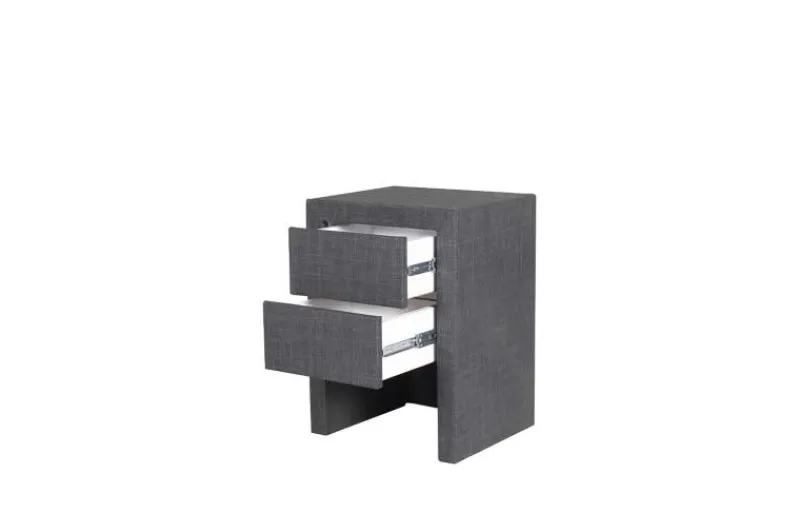 Het Schiedam Nachtkastje, uitgevoerd in een elegante donkergrijze stof, biedt naadloze stijl en praktische opbergruimte met zijn soepele lades. Ideaal voor het opbergen van uw bedtijd benodigdheden, dit nachtkastje is de perfecte aanvulling op uw slaapruimte, die zowel functionaliteit als een vleugje moderne elegantie toevoegt. Dit nachtkastje is het ideale meubelstuk om naast uw te plaatsen.