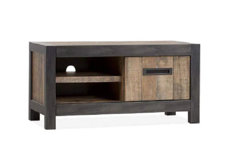 De Coevorden TV meubel in de kleinere uitvoering heeft één deurtje en twee open vakken. Het compacte model biedt op deze wijze toch nog voldoende opbergruimte. De robuuste look van deze televisiekast past perfect bij het industriële of moderne interieur.