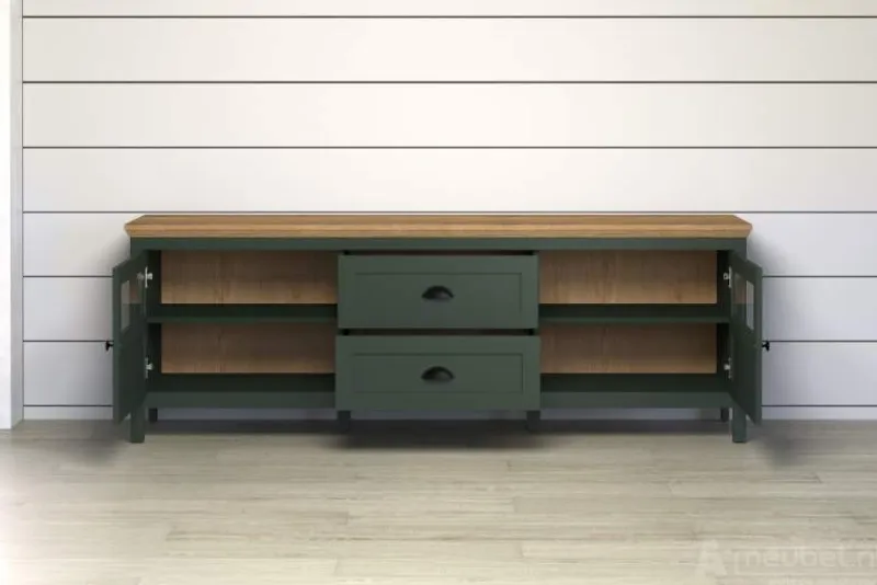 Kleur/materiaal: Donker groen met eikenhout afwerking