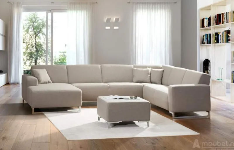 De Kerkdriel U-Bank is een strak vormgegeven bank die prima past in een moderne inrichting. Deze stijlvolle bank biedt ruimte aan minimaal vier personen en heeft ijzeren poten in de kleur chroom of zwart. U kunt de U-bank laten bekleden met stof of verschillende soorten kunstleer in diverse kleuren. De serie Kerkdriel bevat een complete lijn zitmeubelen, u kunt hiervan uw eigen combinatie maken. U kunt bijvoorbeeld een combinatie maken met een royale fauteuil of van een twee- en driezitsbank.