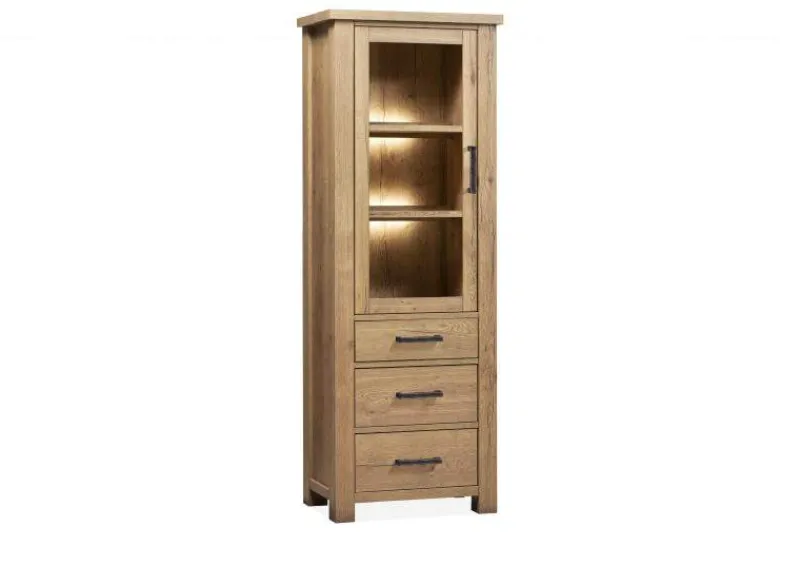 Model: Nieuwegein Vitrinekast Klein 1 deur glas 3 laden Lamulux