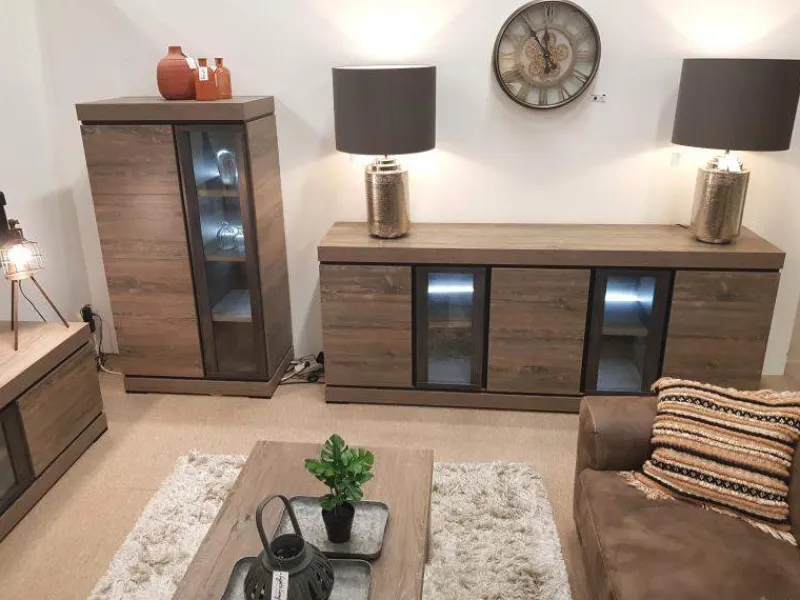 De Bloemendaal woonkamer set is perfect voor de liefhebber van de moderne en landelijke woonkamer. Deze meubel serie heeft deze twee woonstijlen namelijk perfect met elkaar weten te combineren door de sfeervolle uitstraling van eikenhout te combineren met de strakke vormgeving en een uniek zwart lijnenspel.