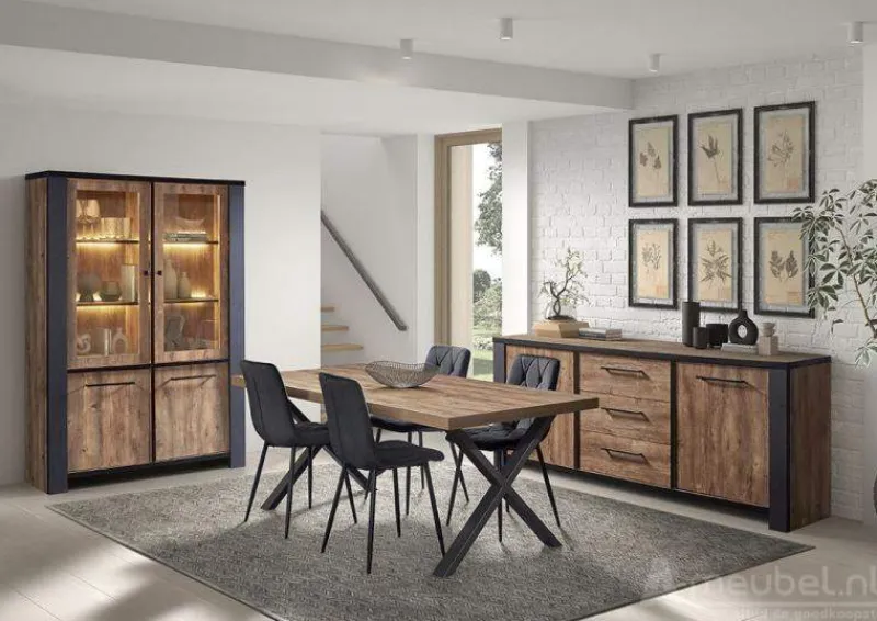 De woonkamerset Saasveld bestaat uit klassieke meubels uitgevoerd in de denver eiken houtlook. Deze set bestaat uit een dressoir, TV meubel, eettafel & salontafel. U kunt deze set compleet maken door een vitrinekast toe te voegen.